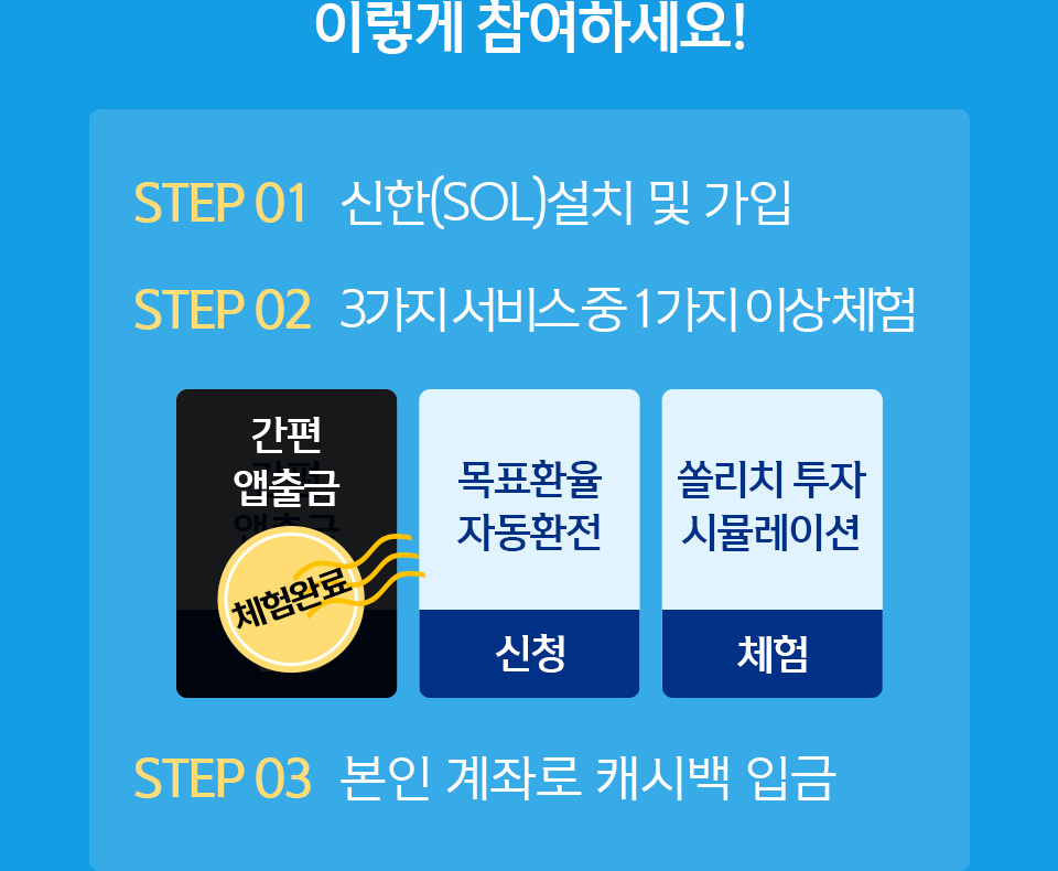 - 이벤트 기간 중 신한쏠(SOL) 신규 가입 고객에 한해 참여 가능합니다.